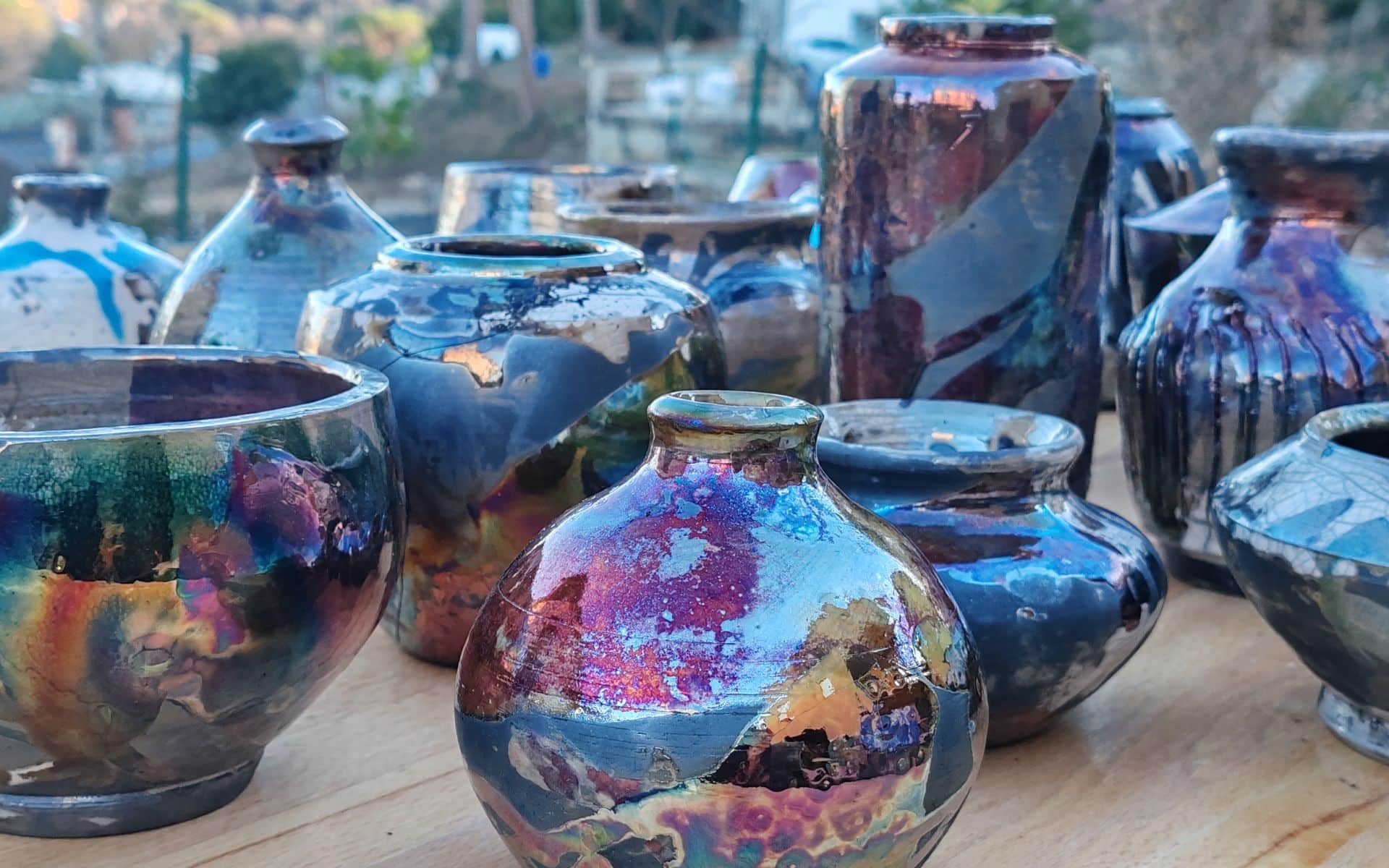 La cocción de rakú es una técnica cerámica centenaria. Se caracteriza por efectos visuales de gran impacto, espontáneos e irrepetibles dónde el dialogo entre tierra, agua, aire y fuego tienen los roles principales.